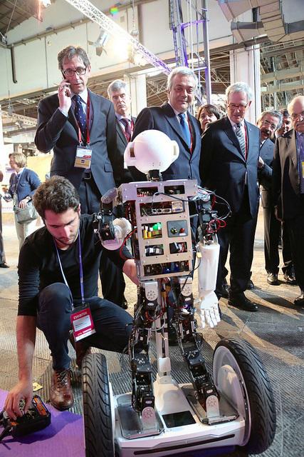 Robosavvy團隊表示他們此前一直在為一個大學項目完成人機交互的部分,其成果即是新開發的這款機器人。“我們被邀請參加4YFN活動,并展示我們的定制機器人技術開發能力。這個機器人擁有經過改進的類似賽格威的平臺,它的頭可以通過Oculus Rift遠程控制,這個人形機器人可以通過運動自己的身體來控制控制賽格威或者也可以通過遠程直接控制電子平衡車。”研究人員解釋說。