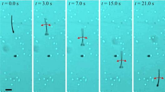 實(shí)驗(yàn)顯示,游泳者游泳者和微游泳者粘稠環(huán)境中表現(xiàn)令人非常滿意和驚喜。尤其是對微型游泳者的進(jìn)一步實(shí)驗(yàn)中,后者不僅可以攜帶“貨物”,還可像細(xì)菌一樣旋轉(zhuǎn)運(yùn)動。