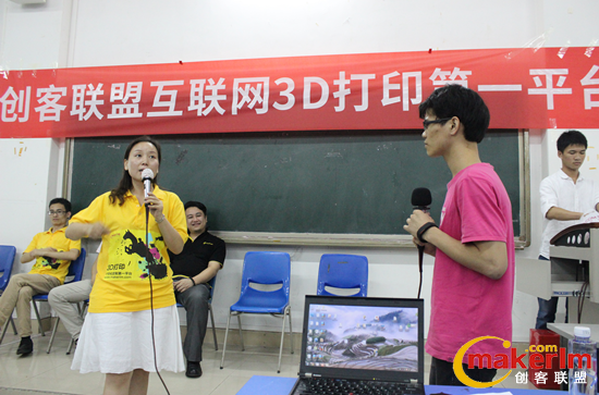 創客聯盟的創始人陳晶,通過親身經歷講述成功秘笈——相信自己、無懼失敗。從創業初期的舉步維艱,到現在一步一個腳印,得到社會各界的認可,更重要的成就感來自能借助創客聯盟3D打印平臺,讓設計師的想法落地成型、用戶滿意、市場認可、多方利好。