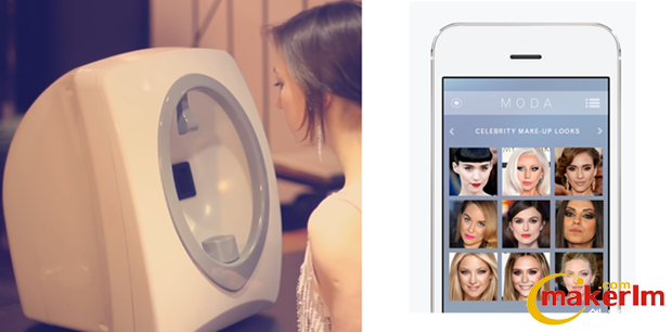 MODA使用了市場上最先進的實時面部繪圖軟件,并和尖端的3D打印技術相結合,可以配合一款簡單直觀的app使用。該app內有幾十個內置妝容可以選擇,用戶選好妝容以后,app會將之與用戶臉部照片相結合,并展示化妝后的效果。如用戶對效果滿意,他們可以將臉部放到MODA上進行掃描,掃描后30秒鐘內,MODA將會把化妝品3D打印到用戶臉上。